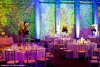 The dramatic centerpieces combined with the purple uplighting transform this reception space into a winter wonderland.