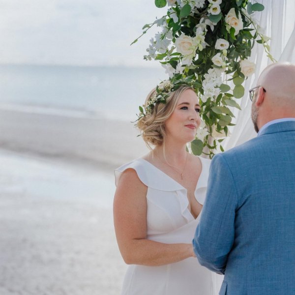We love the adoring look in this bride's eyes during this couple's romantic beach ceremony.