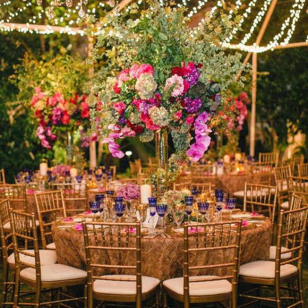 From the lush blooms to the luxe gold details, we love everything about this glamorous reception décor.