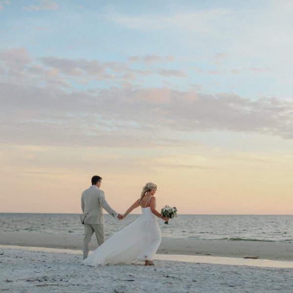 Escape to the beach at sunset for a special moment together.