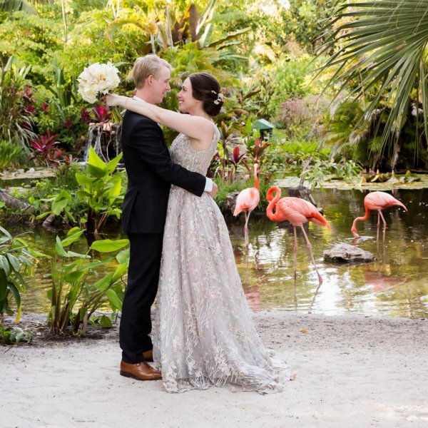 The flamingos at Everglades Wonder Gardens add such an element of fun to your wedding photos!