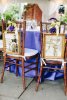 At the sweetheart table, hang childhood photos from your chairs.