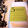 Mark each table with a bottle of wine. Ask the guests at that table to sign a message on the bottle, and enjoy it on that number's anniversary!
