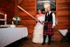 This groom, wearing the kilt of his family's tribe, used his grandfather's sword to the cut the cake.
