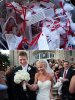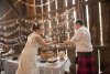 Instead of having your guests toss bird seeds or flower petals as you leave the ceremony, toss something meaningful to you and your family — this couple used wheat from the groom's family farm.