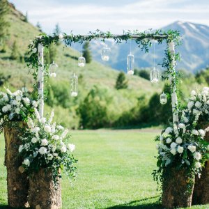 Create a beautiful backdrop for a winter wedding ceremony with images of trees.