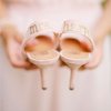 Personalize your wedding-day shoes by stenciling your new married name on the heels.