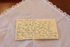 This bride received a handmade handkerchief from her mom, made using an old hankie from her father and embellished with lace from the bride's christening gown.